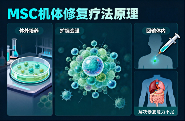 MSC 机体修复疗法,本质就是用身体自身的 “修复潜力”,解决健康问题 —— 既不用吃药打针硬扛,也不用手术折腾,而是靠 “修复工程师” 帮身体恢复本来的健康状态。
