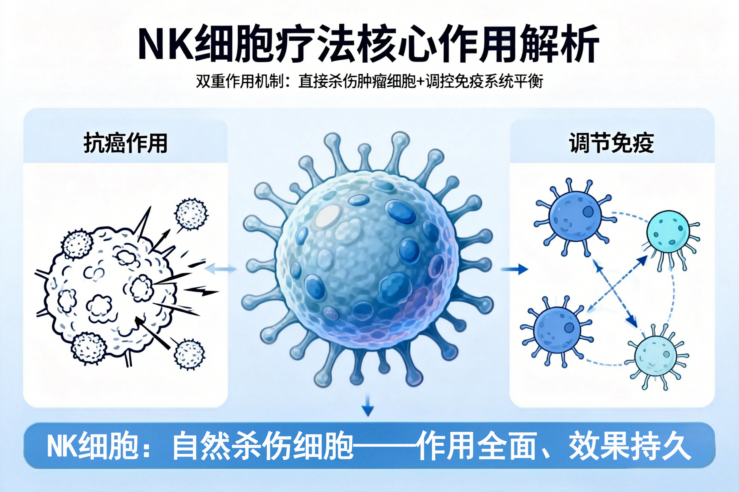 在肿瘤治疗领域,“绿色、安全、高效” 始终是医患共同追求的目标。近年来,一种被央视誉为肿瘤治疗 “绿色疗法” 的技术 ——NK 细胞疗法,凭借其独特的作用机制与显著优势,逐渐走进大众视野,成为防癌抗癌的新希望。它不仅能直接精准打击肿瘤细胞,更能调节机体免疫平衡,为健康筑起双重防线。